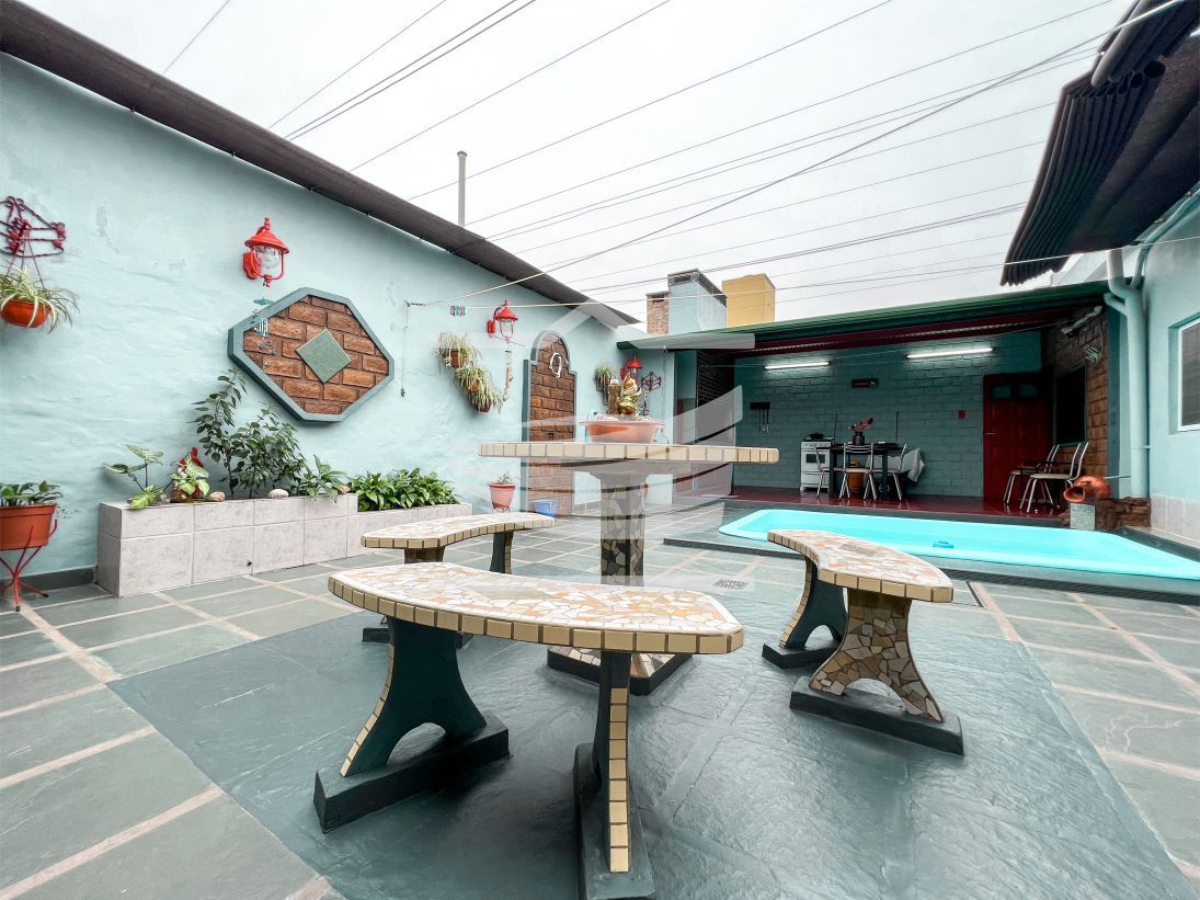 La vivienda cuenta con recibidor, cocina-comedor amueblada, lavadero separado, toilette, 3 dormitorios, baño completo, patio con pileta, quincho semicubierto con habitación auxiliar y cochera.